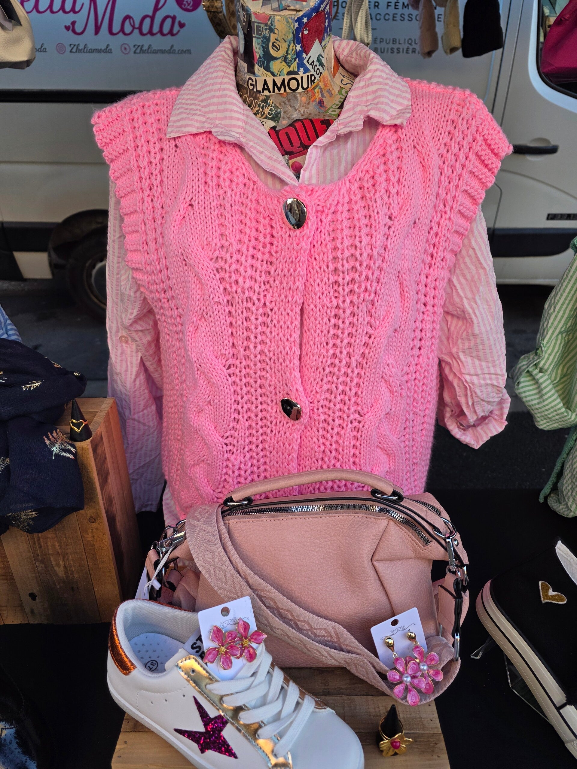 Gilet sans manche, gros bouton doré